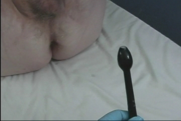 After a probing rectal exam the nurse decides the best remedy for his tummy ache is a series of enemas.