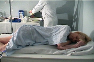 Lisa Blake's Follow-up Exam This product was produced in 1994 and is in compliance with 18 U.S.C. Section 2257 This DVD has been re-mastered and re-edited from the original 8mm digital tapes and now has the quality of our newer products. Doctors always have patients that they just dread to see on the schedule! Lisa Blake is one of them! She's a hypochondriac and is always calling in to be seen, but whines and complains constantly when she's being treated. Today, Lisa wakes up with a fever and abdominal pain. Laying in bed she pulls down her panties and takes her rectal temperature. Seeing that its a bit elevated, she makes an appointment at the Public Health Department. Dr. Albert Fish reviews her chart and recalls that she's been there before, complaining of the same thing. To ease her pain, and get a good look at her bottom, he gives her a shot while she's bending over the edge of the exam table. Thinking that perhaps her pain is due to ovulation, he takes her down the hall to the ultrasound room and gives her a vaginal ultrasound. There are no cysts on her ovaries so he's going to have to do a complete pelvic and rectal exam. Starting with the usual abdominal palpation and breast exam, he makes certain there is nothing obviously wrong. Before giving her the pelvic exam, Dr. Fish informs her that he's going to give her the first of two enemas. That way there will be some time before the second one and she might tolerate it better. Lisa complains during the entire administration of one quart and is finally sent off to the bathroom. With her feet in the stirrups, Dr. Fish thoroughly examines Lisa's labia, and external genitals. Then he inserts his finger deeply into her vagina, feeling for any abnormal mass. Next, a well lubricated finger is inserted into her rectum at the same time as he feels insider her vagina. In order to see her cervix and do a Pap smear, Dr. Fish inserts a speculum into her vagina. Her cervix is swabbed with a long q-tip. Lisa's second cleansing enema is administered with no less whining than the first one. She takes the 1500ml complaining of cramps the entire time. Finally, laying on her left side with her knees drawn up to her chest, Lisa is given a proctoscope exam. Dr. Fish inserts the long metal probe into her rectum to see if her external hemorrhoids are mirrored by internal ones. The painful examination reveals nothing abnormal about her rectum. With nothing obviously wrong with her physically, Dr. Fish sends Lisa on her way, knowing full well that she will be returning again someday.